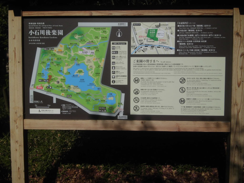 駅から徒歩で8分にある「小石川後楽園」(こいしかわこうらくえん)は、江戸時代初期に水戸徳川家の江戸上屋敷内につくられた築山泉水回遊式の日本庭園(大名庭園)で、国の特別史跡及び特別名勝に指定されています。